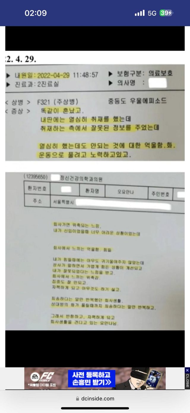 진료 기록을 보면 22년에 이미 정신과 진료를 받았네요