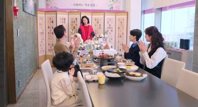 공개된 사진 속에는 지송이와 여동생 지은규(주아름 분), 조카 제이지(윤하빈 분) 그리고 아빠 지팔욱(이윤건 분)과 엄마 박미란(윤예희 분)까지 온 가족이 총출동해 박수를 치며 즐거운 파티를 즐기는 현장이 담겼다.