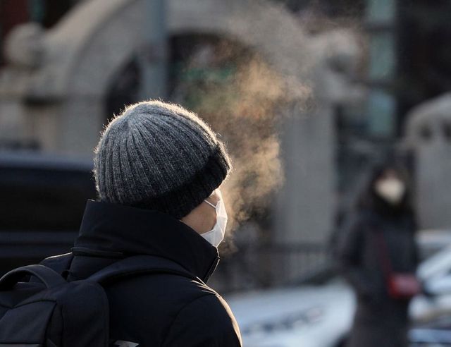 입김이 절로 나오는 추운 날씨에 출근하는 시민 / 뉴스1