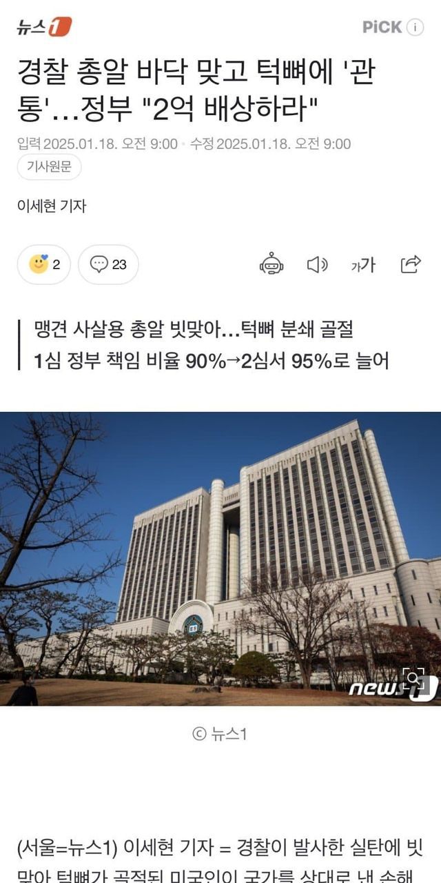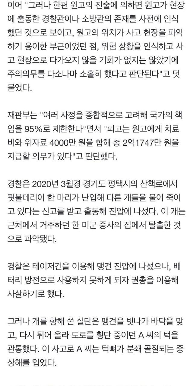 1. 경찰이 맹견 잡으려고 실탄 쏘다가 도탄되는 바람에 전직 미군이 턱에 총알 맞음