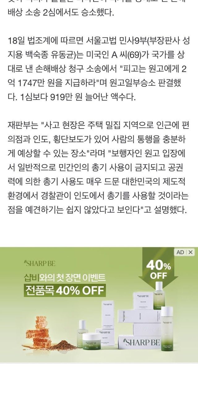 2. 피해자 미군이 국가 상대로 소송걸었는데, 법원에서는 너 잘못도 있다며 일부만 인정