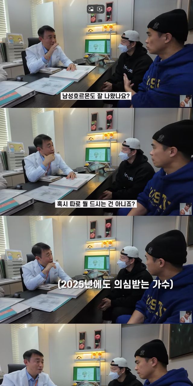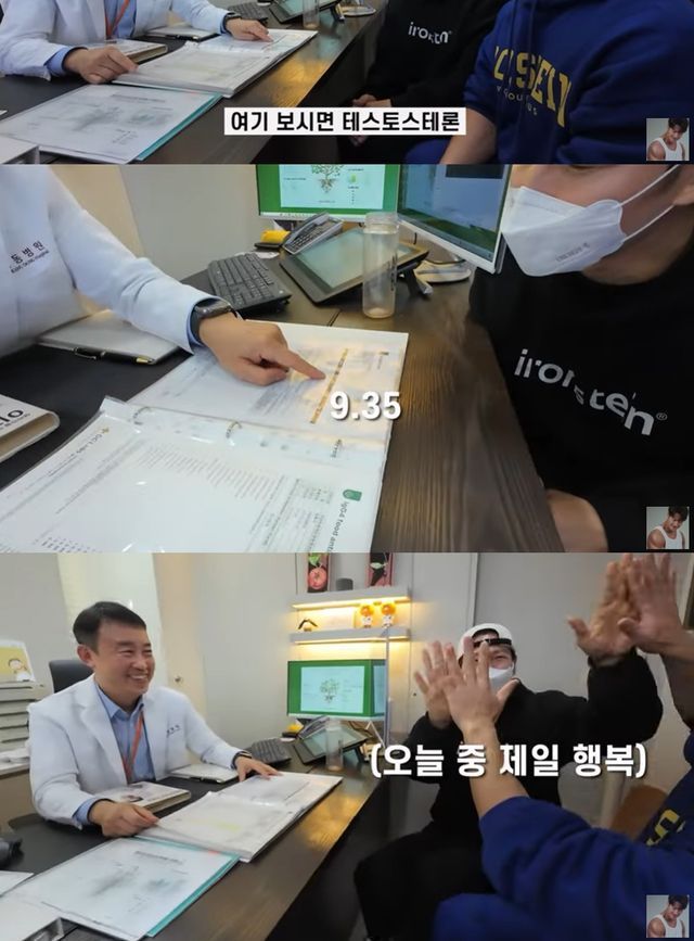 남성 호르몬도 잘 나왔냐는 질문에 의사는 "맞다"고 답하더니 김종국한테 "혹시 따로 뭘 드시는 건 아니죠?"라고 의심했다. 테스토스테론 수치가 9.35로 이전보다 높게 나오자 김종국은 "올라갔다"며 기쁨을 표했다.