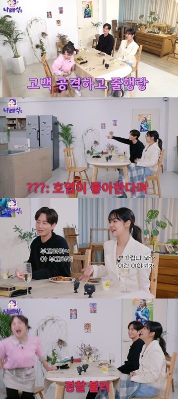 박나래는 "걔도 좋아하고 너도 좋아했다"고 고백했고, 이현욱은 "워낙 티격태격하던 사이"라며 "전혀 몰라서 부끄럽다"고 말했다. 그러면서 "경찰 불러"라고 말해 웃음을 자아냈다.