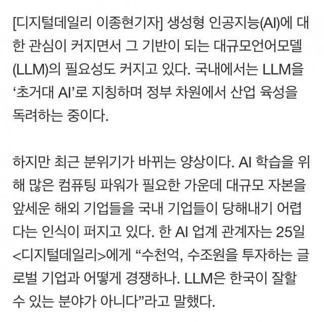 Ai 자체개발 하려는데 돈이 완전게 많이 들어가니