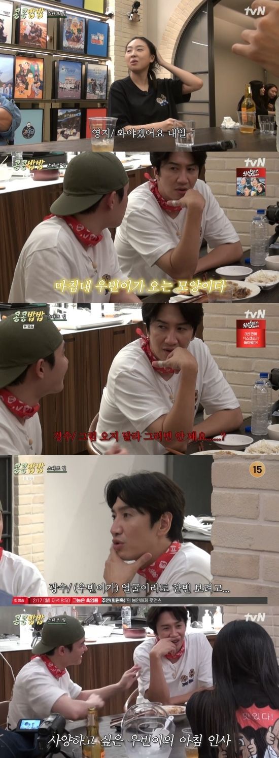 이광수는 "네가 물어봐라. 꼭 와야 되는 거냐고 물어봐라. 와서 뭐 할 거냐고 물어봐라"라며 말했고, 도경수는 "8시부터 몇 시까지 있는 건데?"라며 궁금해했다. 나영석 피디는 "8시 50분. 잠깐 얼굴 보고 인사라도 하고 싶다 그래서 '어, 그래' 그렇게 된 거다"라며 전했고, 이영지는 "8시에 오셔서 뭐 하시냐. 메뉴도 모르시고"라며 의아해했다.