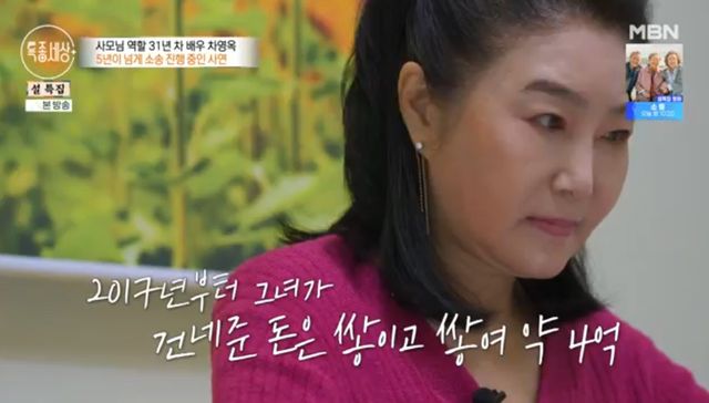 차영옥은 2019년 10월부터 고소를 시작했다고. 2017년부터 건네준 돈만 수억원에 달하고, 사랑하는 사람을 위해 모든 재산을 처분했다고 전해 안타까움을 안겼다.