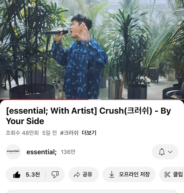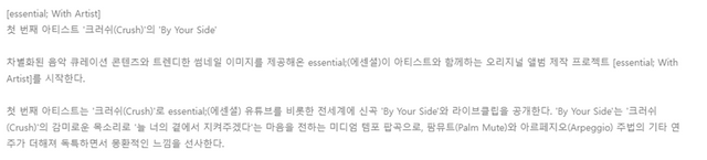 크러쉬 이번에 플레이리스트로 유명한 유튜브 채널 에센셜이랑