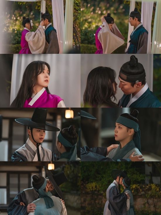 먼저 홍덕수가 자신이 여인임을 드러내고 이은호와 입 맞추기 1초 전까지 가까워졌던 정혼례 전야제의 스틸컷이 눈길을 끈다. 천방주(김의성)의 거처에서 황동금시를 훔쳐 달아나던 중, 추적을 피하기 위해 정혼례 전야제를 즐기는 연인인 척했던 홍덕수와 이은호. 먼저 머리를 풀고 가까이 다가선 홍덕수와, 홍덕수가 여인임을 알고 깜짝 놀란 이은호 사이의 텐션이 시청자들의 가슴까지 콩닥거리게 만들었다.