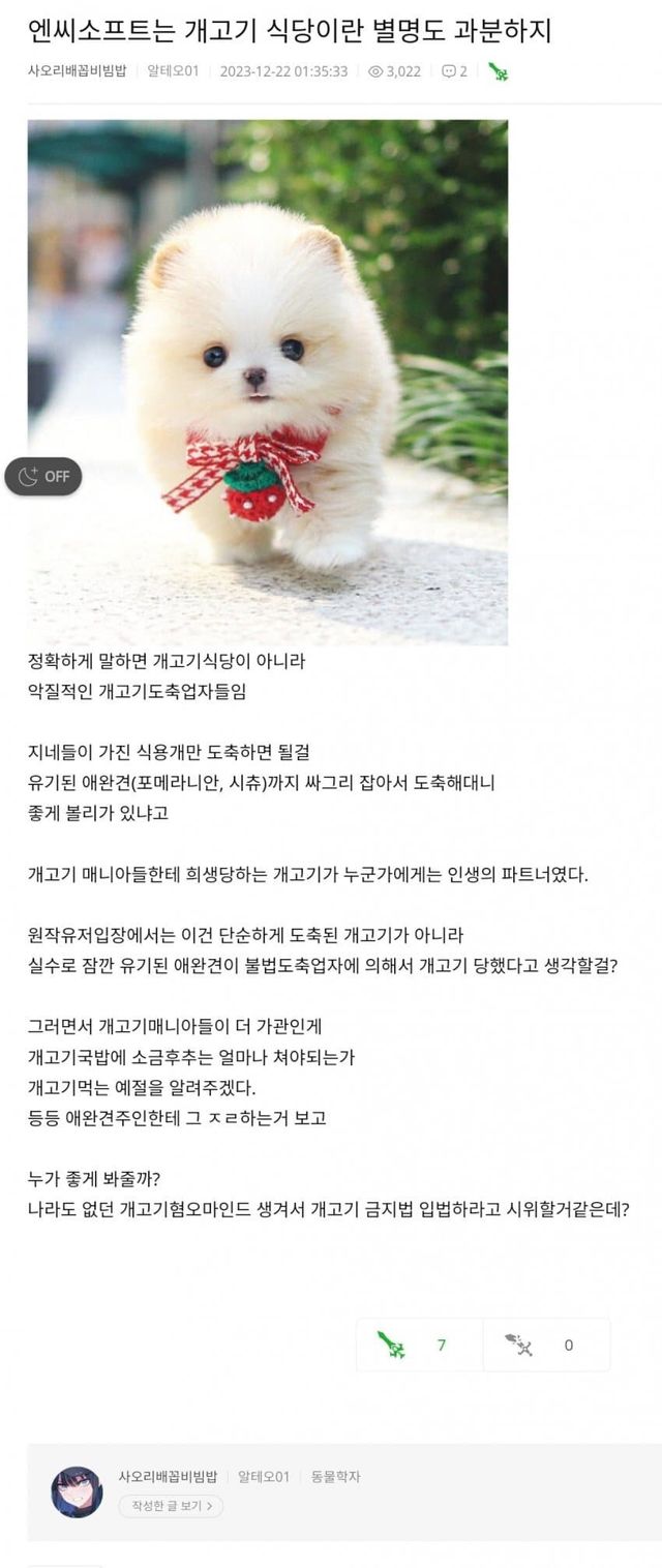 원조개고기론에서 애완견 개고기 도축업자로