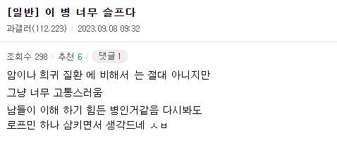 똥 방귀 관련 질환이라 기피 당하거나 비웃음 당할때도 많고 수치스러워서 어디 토로하기도 어려움