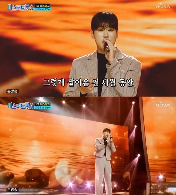 고정우는 지난 30일 방송된 TV조선 '미스터트롯3' 본선 2차전인 1:1 데스매치 대결에서 일본에서 활동 중인 강민수와 대결을 펼치게 됐다. 고정우는 강민수를 향해 "이 동생이 봤을 때는 이제 일본으로 돌아가실 때인 것 같다. 잘 가셨으면 한다"며 팽팽한 기싸움을 펼쳤다.