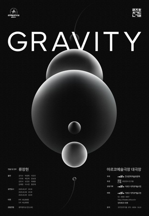 ‘2024 공연예술 창작산실’ 올해의 신작으로 선정된 이 작품은, '중력'의 힘을 탐구하며 탄생했다. ‘우주에 존재하는 모든 물질적인 것들이 오래전부터 우아한 춤을 추고 빙빙 돌고 있다’는 해석을 통해 모든 것을 연결하고 제자리에 붙들어 주는 힘의 상호작용을 춤으로 표현한다. 이를 통해 중력을 단순한 물리적인 힘이 아닌 철학적 차원으로 해석해 보게 한다.