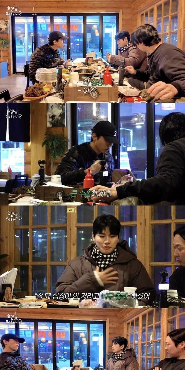 하하는 "나는 아이들을 케어해야 하니까 쉬는 날이 더 빡세다. 근데 그게 제일 행복하다. 자라나는 아이들을 보면 나이 먹는 게 두렵지 않다"라고 말했다. 그러자 이이경은 잠시 생각에 잠긴 듯 "나도 가족 얘기를 할까 말까 고민하는데 눈물날 것 같아 안 했다. 어머니가 며칠 전에 수술하셨다"라며 울먹이기 시작했다.