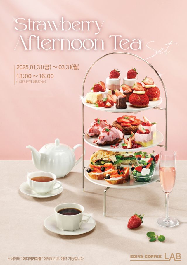 이디야커피랩의 ‘스트로베리 애프터눈티 세트’는 이날부터 3월 31일까지, 평일과 주말 오후 1시부터 4시까지 예약할 수 있으며, 이용 시간 제한은 없다. 예약은 이디야커피랩 네이버 예약 플랫폼을 통해 진행할 수 있다.
