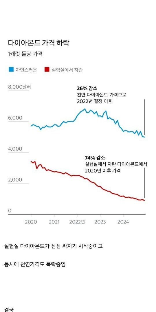 천연과 인공의 가격대를 의도적으로 벌리고 인공 다이아몬드 제작사들을 망하게 하려는 움직임을 보인다고 들었었는데