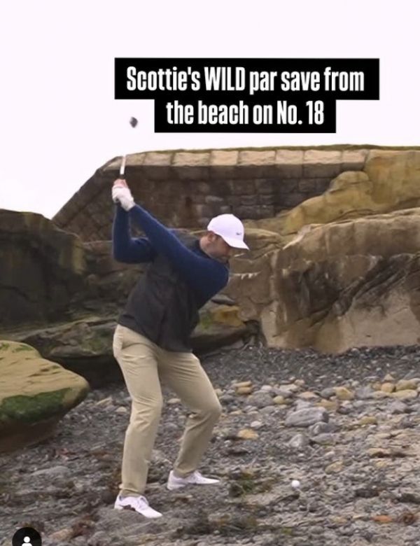 그런데 PB코스 18번홀(파5, 536야드)에서 위기에 몰렸다. 티샷한 볼이 페어웨이보다 7.6m 낮은 왼쪽 바다옆 모래에 낙하했다. 치기 어려운 트러블 상황. 볼 주위의 살핀 뒤 웨지를 잡고 이를 절묘하게 페어웨이로 레이업해 3온 시켜 파로 잘 막았다. 셰플러는 2타를 줄여 합계 7언더파 137타로 공동 20위에 올랐다. 선두와는 7타 차다.
