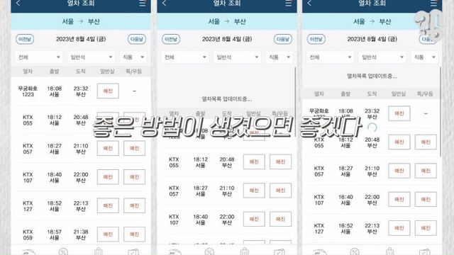 1. KTX 공식 앱에서는 황금시간대 매진인데 야놀자 앱에서는 좌석이 널널하게 남아있음