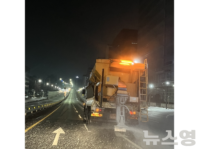 제설 장비 39대, 인력 68명을 동원해 염화칼슘, 친환경 제설제, 염수 등 제설제 총 159t을 지하차도, 고가차도 등에 살포했다. 오전 9시 현재 기온이 영상으로 오르면서 차량 소통이 원활한 상태다.