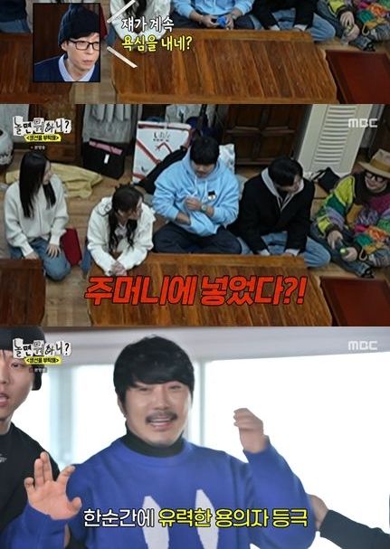 제작진은 편집을 하다가 범인을 찾아냈다며 영상을 공개했고, '놀뭐' 멤버들은 도난 현장 CCTV를 보듯 범인 찾기에 몰두했다.