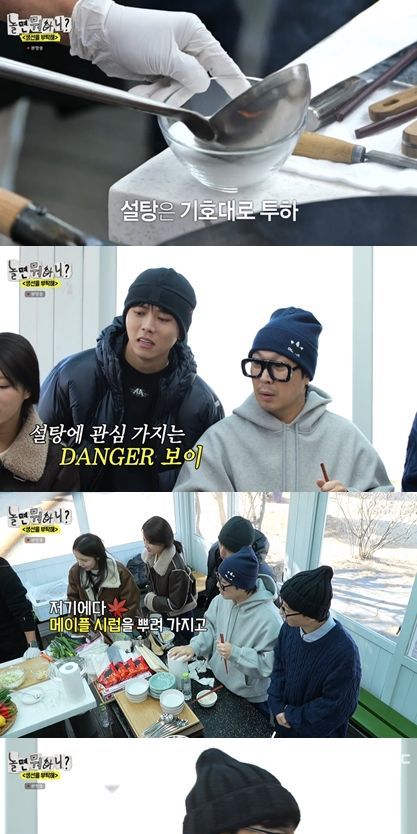 이를 지켜보던 주우재는 "저기에다 메이플시럽을 뿌려 가지고"라면서 군침을 다셨다. 이를 들은 유재석은 "저기다 왜 뿌리냐"라며 질색했다.