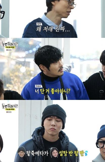 KCM은 "우재야, 너 단 거 좋아하냐"라고 물었고, 유재석과 박진주는 "팥죽에다가 설탕 반 팥 반"이라며 대신 답했다.