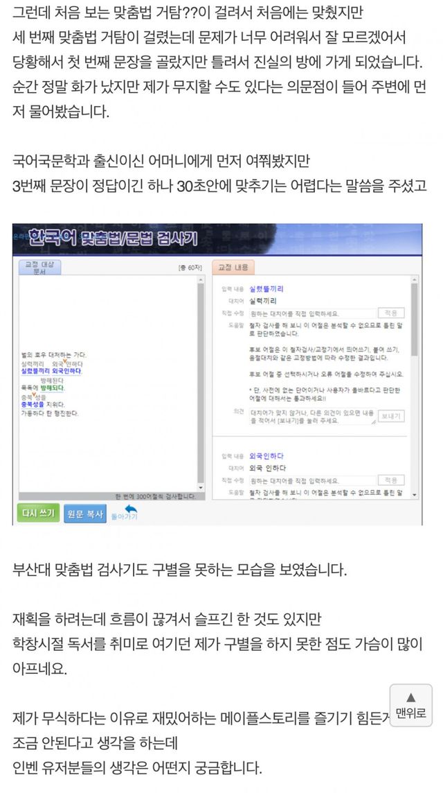 메이플에는 매크로방지(동남아부주 등)를 위한 기능이 있는데 5가지 문장 중 옳은 문장을 선택해야함. 틀리면 진실의 방으로 가서 사냥도 못하고 시간만날림( + 계속틀리면 시간 늘어남)