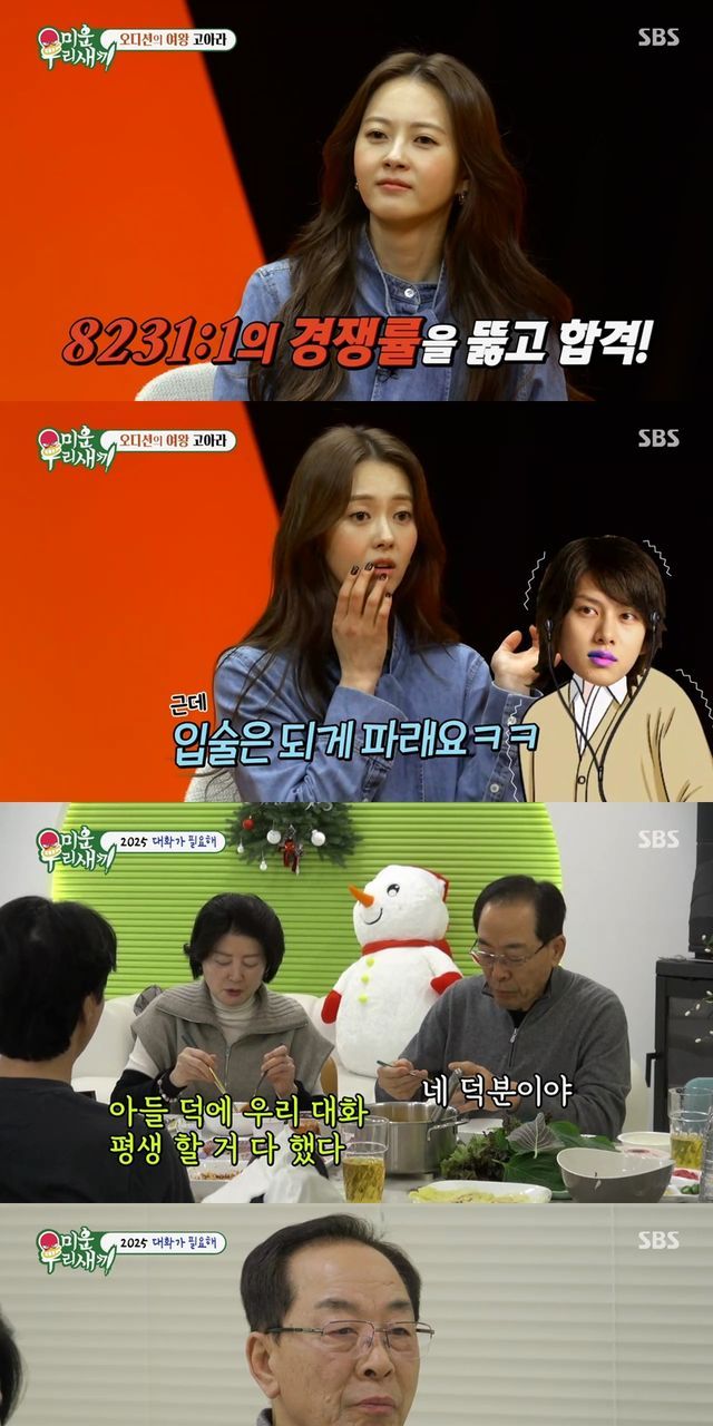 이날 고아라는 쏟아지는 외모 칭찬에 "최근 사극을 찍었는데 디즈니 공주 같다는 말을 현장에서 들었다. 어릴 때 저를 데리고 나가면 지나가는 사람이 다 돌아봤다고 한다"라며 미모 자부심을 뽐냈다. 이어 "마음에 드는 이성에게는 직진하는 스타일이다"라고 밝힌 고아라는 '혹시 상대가 거절하면 어떻게 하겠냐'는 신동엽의 질문에 "(저를) 만날 수 없는 이유가 있을까?"라고 자신 있게 반문해 폭소를 자아냈다. 8231:1의 경쟁률을 뚫고 SM에 캐스팅된 일화를 밝힌 고아라는 "희철 오빠는 한겨울에도 두꺼운 옷을 입지 않았다. 얇은 가디건에 이어폰을 끼고 멋있게 지나가는데 입술은 파랬다. 그래도 멋있었다. 저런 사람이 연예인을 하는구나 생각했다"라고 떠올려 웃음을 안겼다.