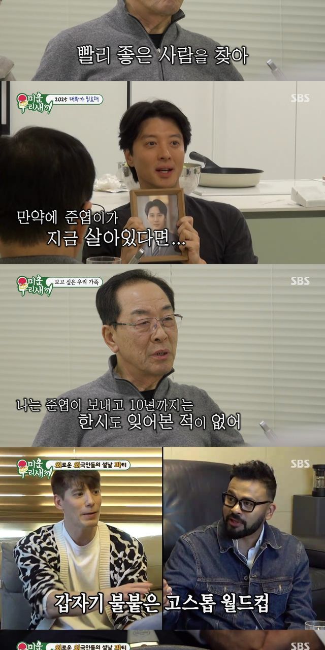 이동건은 "(동생) 준엽이가 성인이 될 때쯤 여행 왔던 그 추억을 다시 나누려고 이곳에 왔다"라며 부모님에게 AI로 만든 37살이 된 동생의 사진을 선물했다. 낯설면서도 그리운 둘째 아들의 사진을 보던 동건 父는 "내가 걔를 워낙 엄하게 다뤄서 그런지 아빠를 싫어했다. 내가 잘못해서 떠난 것 같은 죄책감 때문에 10년 동안 엄청나게 자책을 하며 살아왔다"라고 털어놓아 스튜디오를 눈물바다로 만들었다.