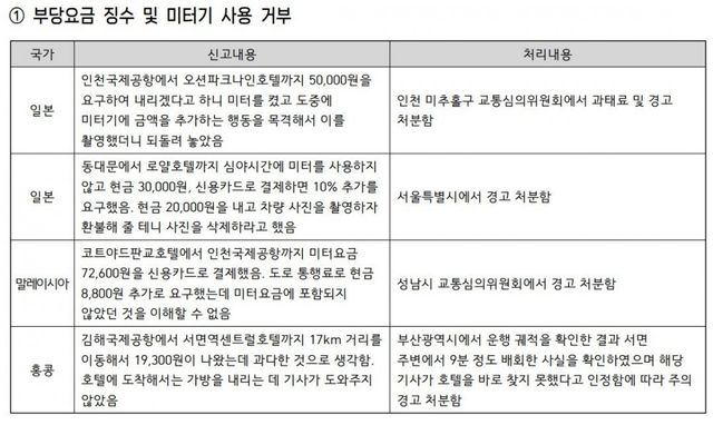 – 인천공항에서 오션파크나인호텔까지 (약 17km) 5만원 청구에 도중 미터기 금액 추가 행동