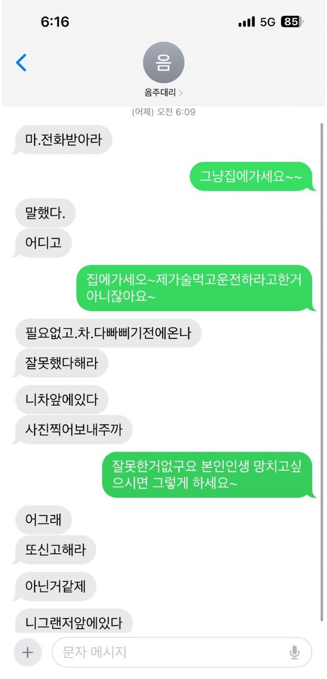 1. 대리 불러서 이동 중 기사랑 시비붙음