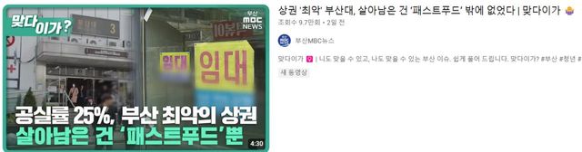 요즘 뉴스를 보면 부산 서면, 남포동, 부산대 상권 다죽었더라.