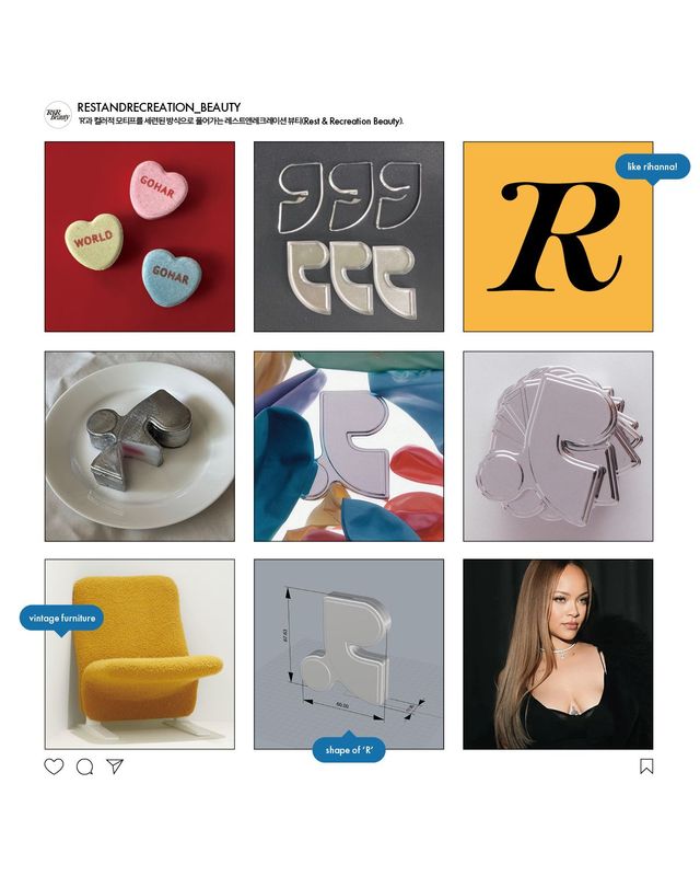 무심하게 ‘툭툭’ 발라도 멋스러울 수 있는 방법이 되기를 바라는 마음으로 브랜드를 만들었다. ‘레스트앤레크레이션’이라는 네이밍은 좋아하는 아티스트 ‘리한나(Rihanna)’에게 깊은 영감을 받은 것. 그녀의 인스타그램 아이디 속 알파벳 조합인 ‘RiRi’처럼 ‘R’이 두 개 들어가는 네이밍을 짓고 싶었다. 브랜드명을 고민하다 이상향을 담고 있는 단어이자 ‘R&R’로 줄여 사용되기도 하는 ‘Rest & Recreation’을 채택했다.
