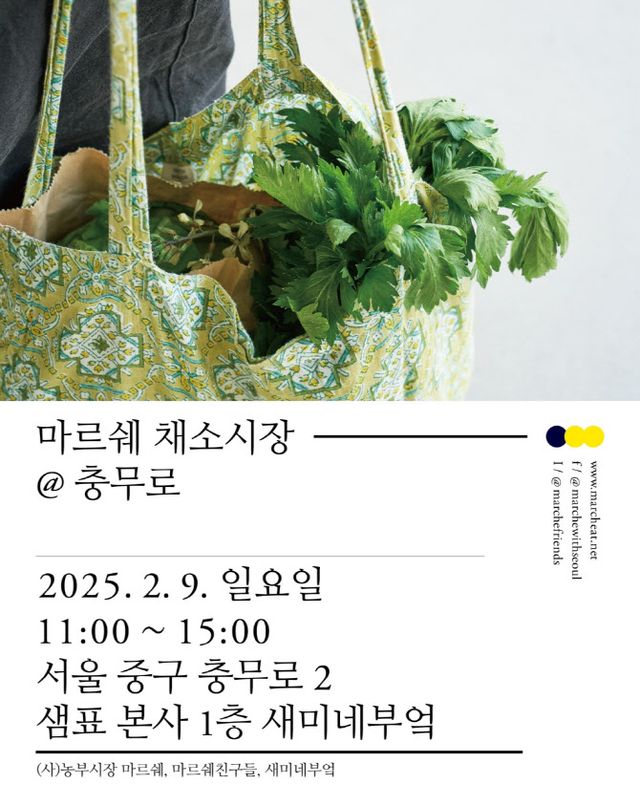 정월대보름을 앞둔 일요일인 9일 오전 11시부터 오후 3시까지 열리는 ‘샘표 새미네부엌X마르쉐 채소시장’에서는 21팀의 농부들이 손수 채집해 말린 각종 나물과 오곡밥의 재료가 되는 잡곡, 부럼 깨기에 쓸 견과를 선보인다. 봄을 알리는 신선한 제철 채소와 두부, 빵, 햄 등 신선 먹거리도 만날 수 있다.