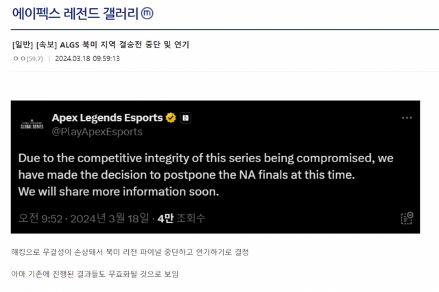 저번에 LCK 해킹 사태로 심각했는데 이번건은 그보다 심각한 게임 대회 해킹 사태로 남을걸로 보인다고함
