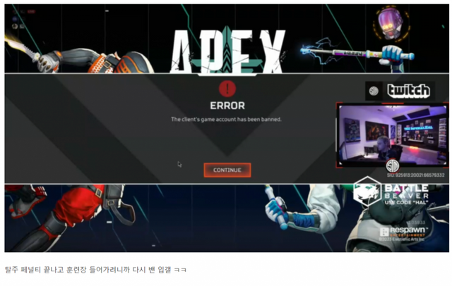 계정이 밴 당해버리면 공식 대회 복귀에도 지장이 갈 수 있다고함