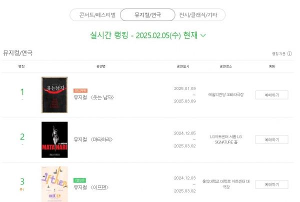 뮤지컬 ‘웃는 남자’가 마지막 티켓 오픈에서도 1위를 차지했다.