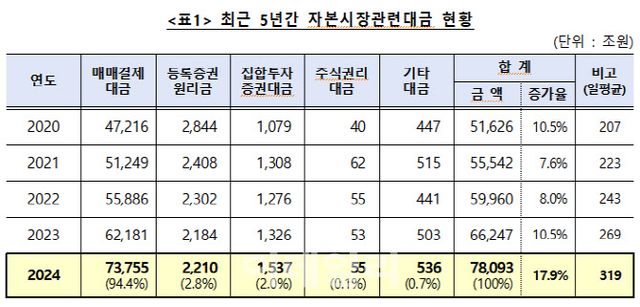 지난해 일평균 처리대금은 319조원으로 2020년 처리대금보다 1.5배 증가했다.