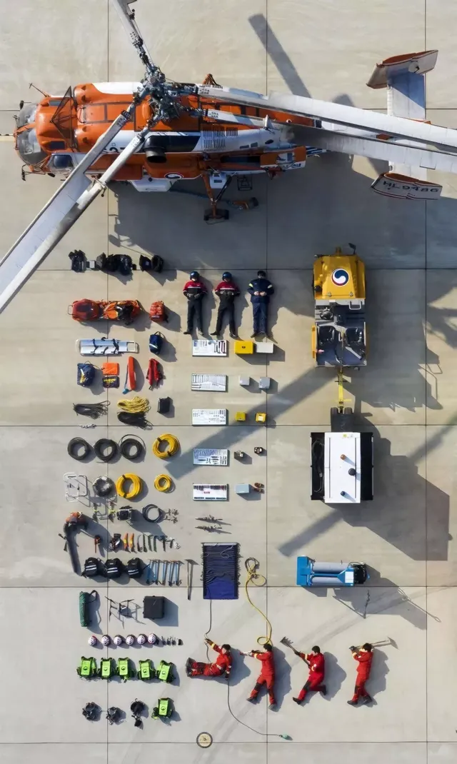 는 드론으로 찍은 산불진화헬기(진짜 사람임)