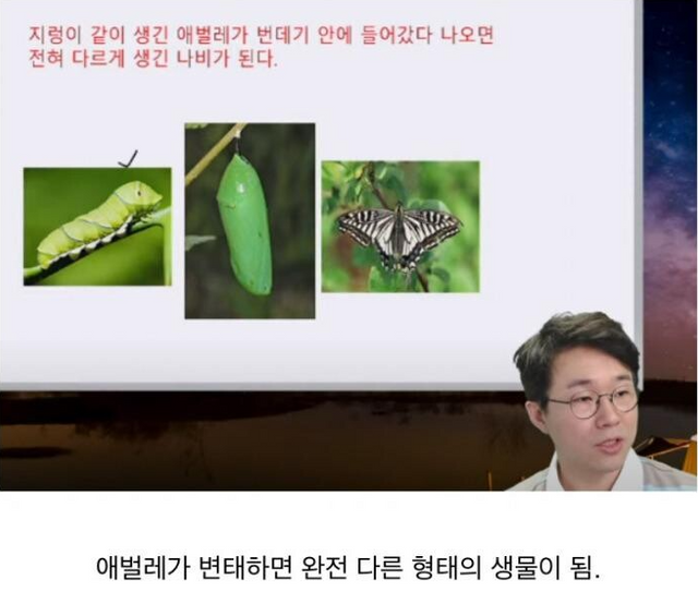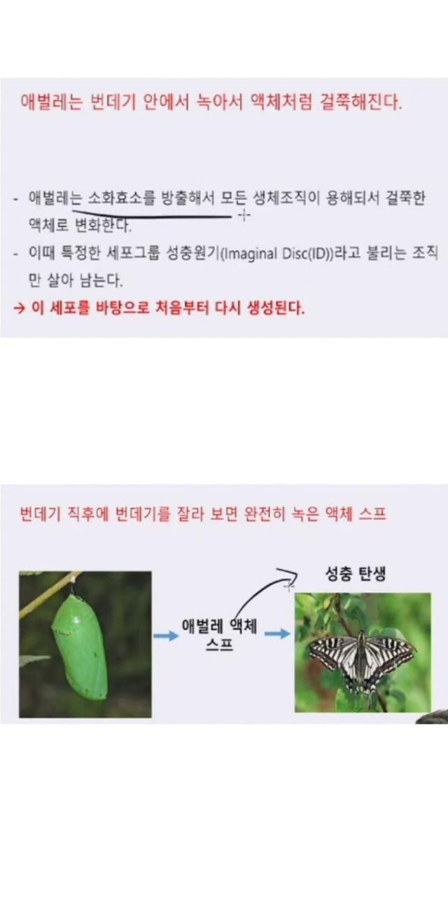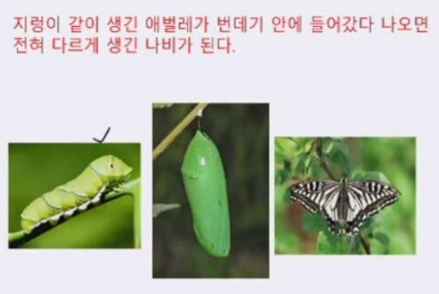 애벌레가 나비가 되는 과정.