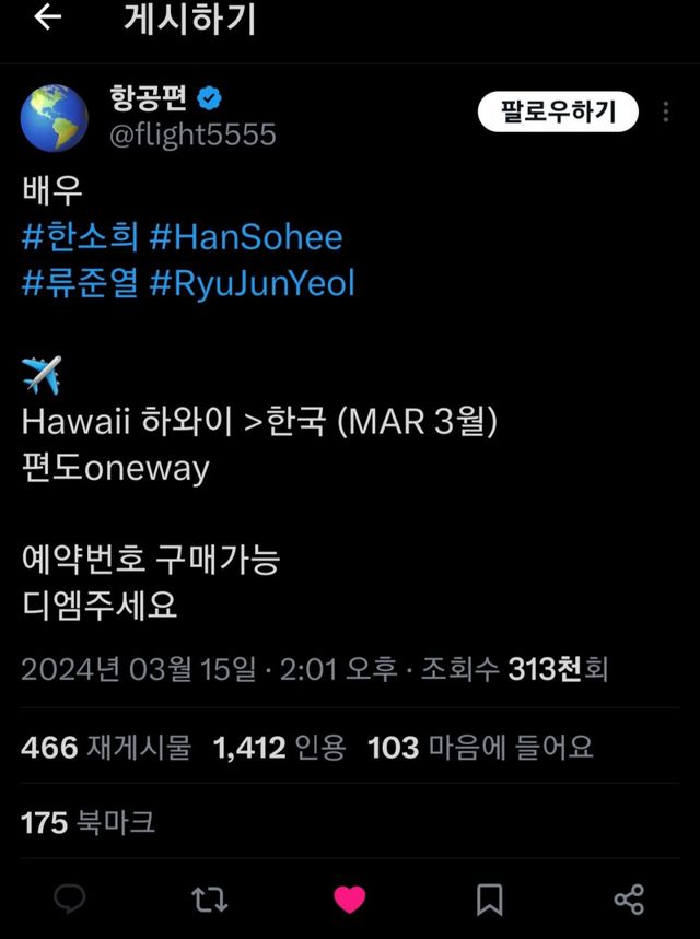 실시간 트위터 연예인 항공편 공유
