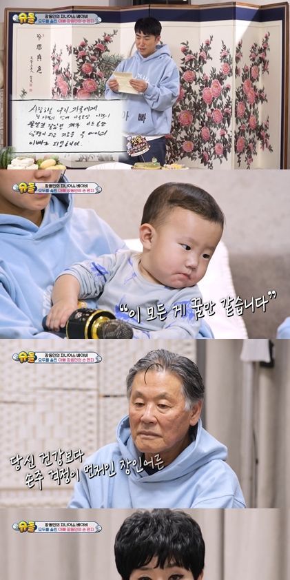 이어 "자식들 몰래 파스를 붙이고 지우, 시우를 돌봐주신 장모님 은혜 잊지 않겠다. 마지막 관절 힘까지 짜서 지우, 시우 안아주시는 엄마 감사하다"라고 감사함을 표했다.