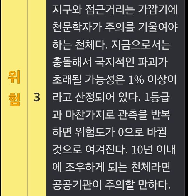 1.6% 확률로 지구충돌 예정
