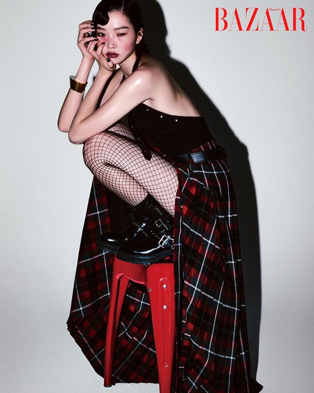 슬립은 Iro. 버블 스커트는 Alaïa. 귀고리, 레이스업 플랫폼 부츠는 Balenciaga. 초커는 Dior. 반지는 Versace. 핸드백은 63만원대 Self-Portrait. 스타킹은 에디터 소장품.