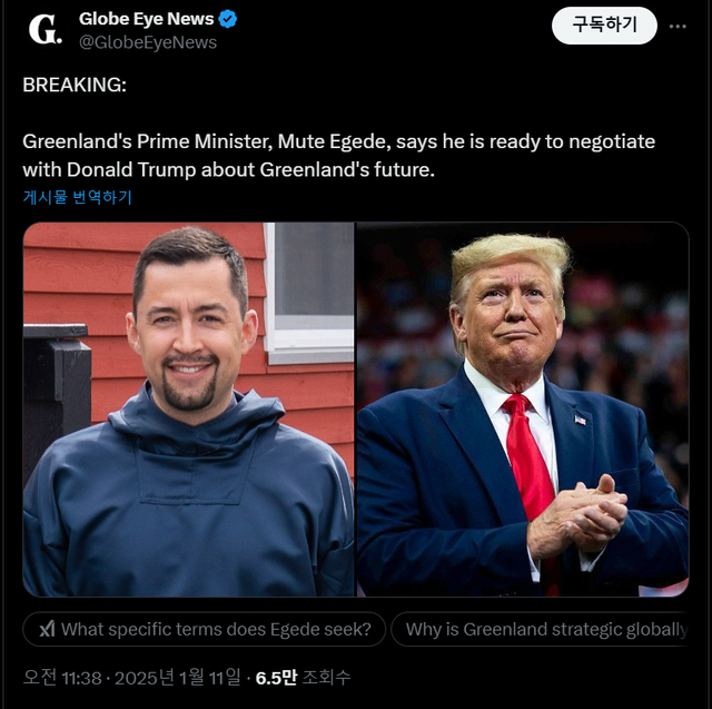 참고로 그린란드 총리는 덴마크에서 독립하는 것을 찬성하는 파임