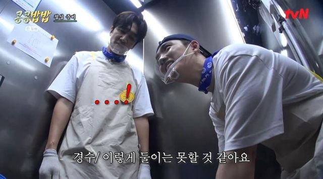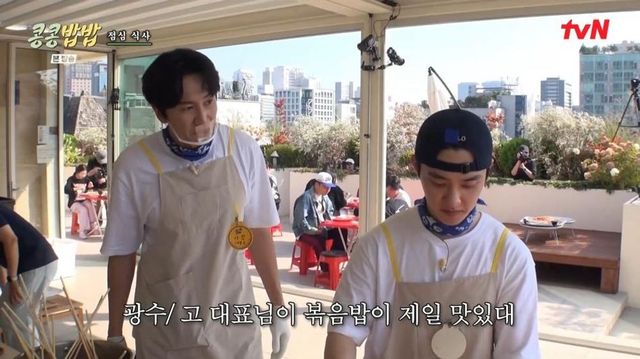 지친 도경수를 보던 제작진은 “경수 콩콩밥밥2는 진짜 안 하겠다”라고 말했고, 도경수는 “이렇게 둘은 못 한다”라고 답했다. 이에 서운함을 느낀 이광수는 “내가 요리를 좀 배우면 되지 않냐”라고 말했고, 경수는 “그럼 너무 좋다”라며 그를 달랬다.