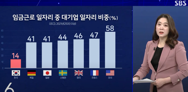 한국은 대기업 일자리 비중이 OECD 32개국 중 최하위