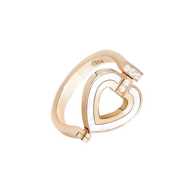 더블 하트 모티프를 기반으로 마더 오브 펄 세팅과 다이아몬드를 파베 세팅한 프리티 우먼 힙노틱 링은 가격 미정,