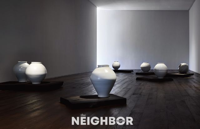40년 가까이 백자를 빚어온 도예가 권대섭. 그는 서양화를 전공했으나 20대에 우연히 인사동에서 백자를 본 뒤 길을 정했다. 평면 작업이 아닌 입체와 추상을 향한 열망이 커지던 시기였다. 이후 5년간 일본 규슈의 오가사와라 도예몬에서 도자를 수학했고, 쭉 백자를 만들어온 작가다. 그의 개인전 <돌아오는 Reduction>이 2월 16일까지 부산 조현화랑에서 개최된다. 백자는 벽오동나무 차탁과 함께 화랑 2층에 펼쳐지는데, 전시장 바닥 곳곳에 차탁을 두고 그 위에 모양이 조금씩 다른 달항아리를 배치했다. 바다의 군도처럼 외따로 떨어져 있는 백자는 어둑한 전시장에서 희끄무레하게 빛난다. 작가는 조선시대 달항아리의 제작 방식을 따르는 동시에 그만의 미감을 추구한다. 조선백자를 두고 정겹고 편안하다는 세간의 인식을 거부하는 그에게 백자란 “긴장감이 넘치고 당당하고 웅장”하며 “힘과 생명력이 넘치는데 그러면서도 절제”된 것이다. 해운대 바다의 기운 아래 강건히 서 있는 백자에 집중할 수 있는 전시다.