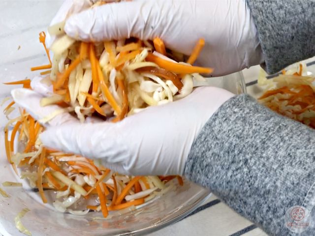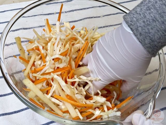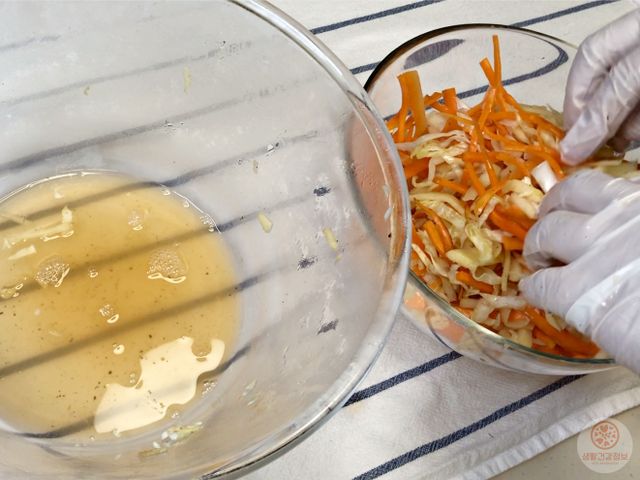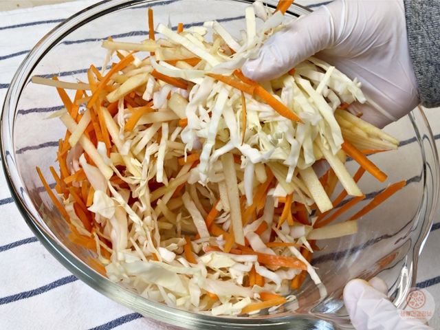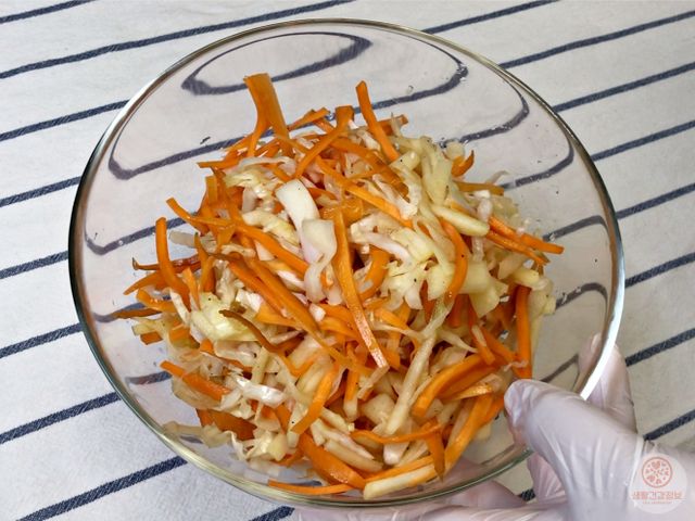 야채를 미리 절여서 물기를 충분히 빼는