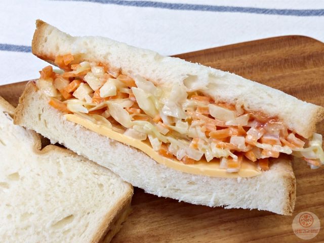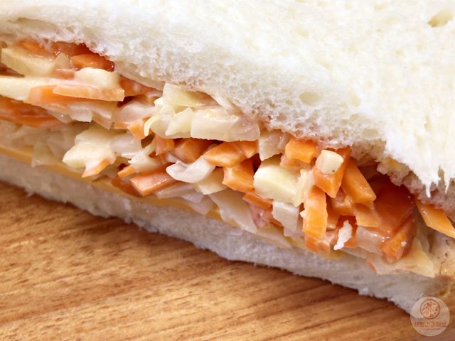 클래식하고 맛있는 추억의 샐러드빵이 완성돼요.